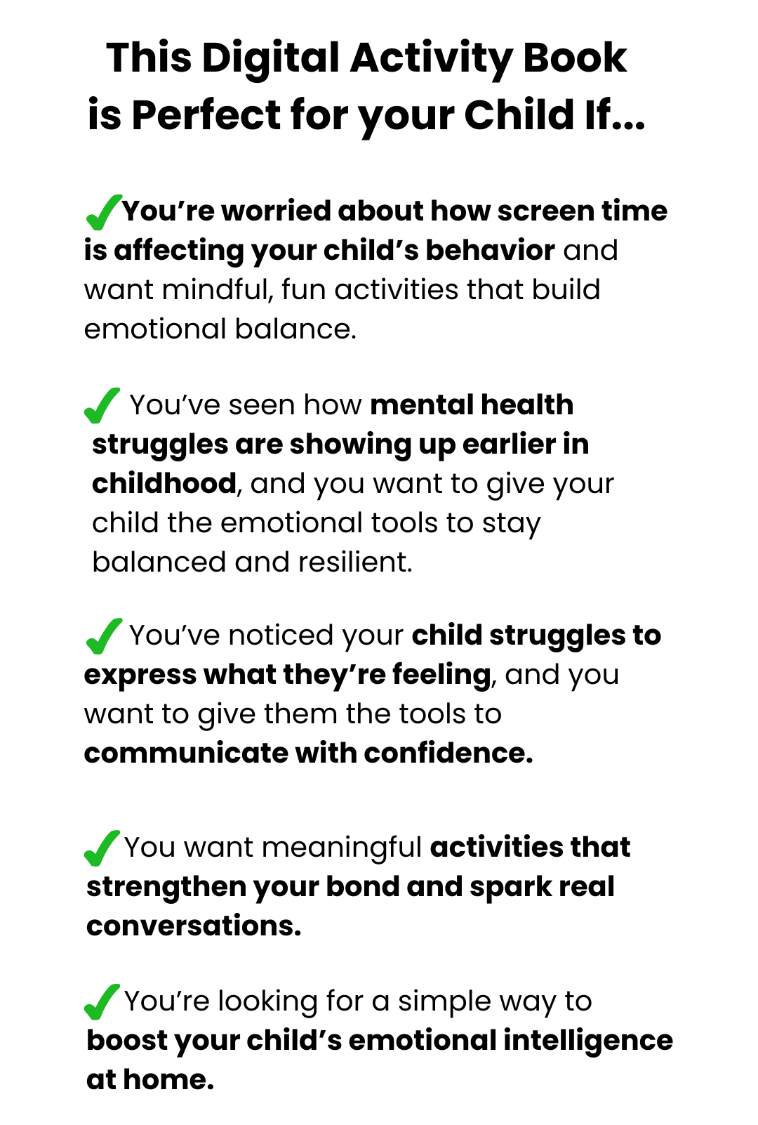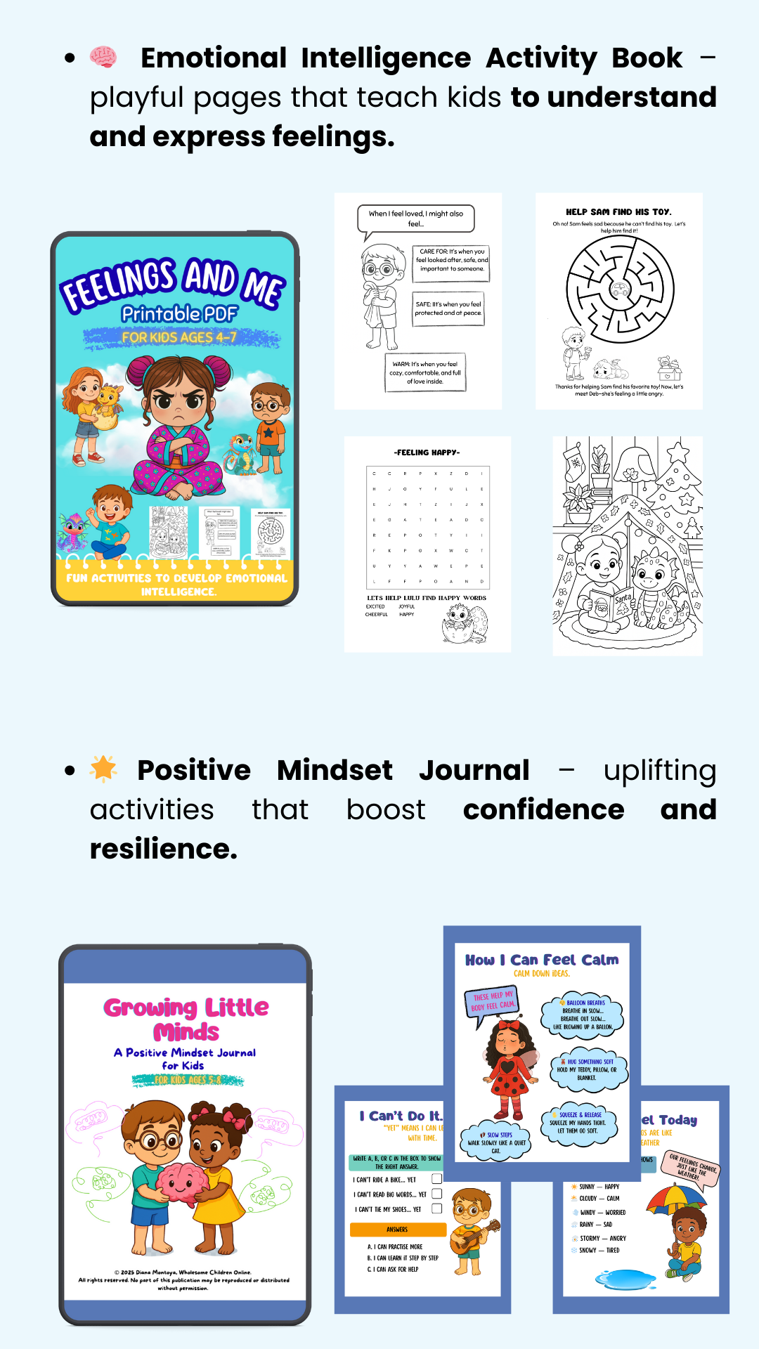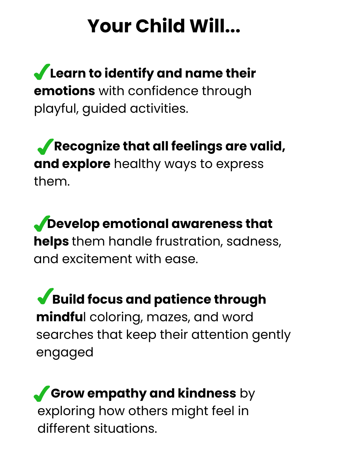 This book is designed especially for children aged 4 to 7 years old, helping them develop creativity, emotional intelligence, and focus through fun, engaging activities.